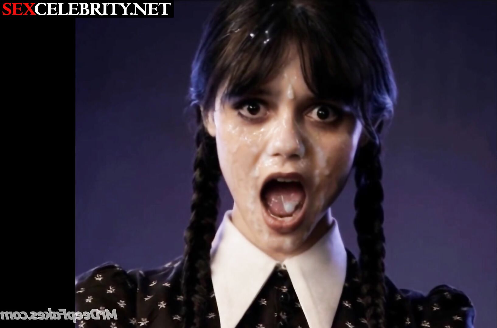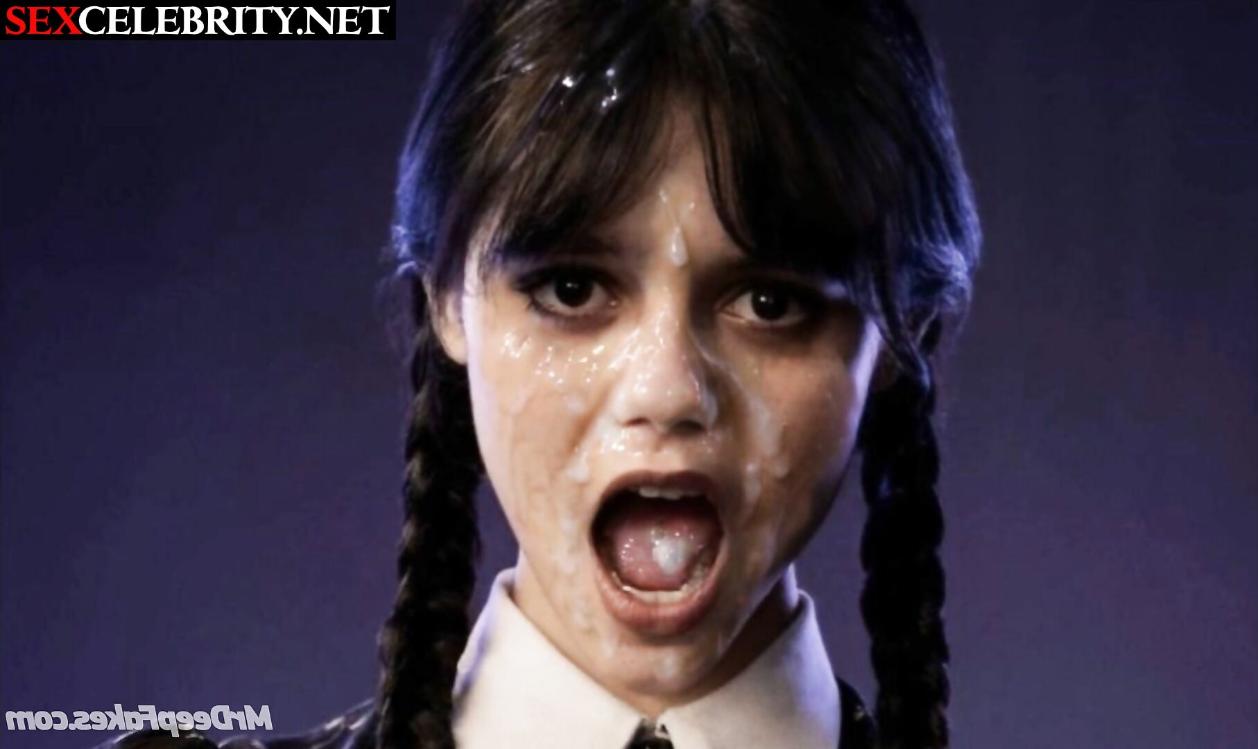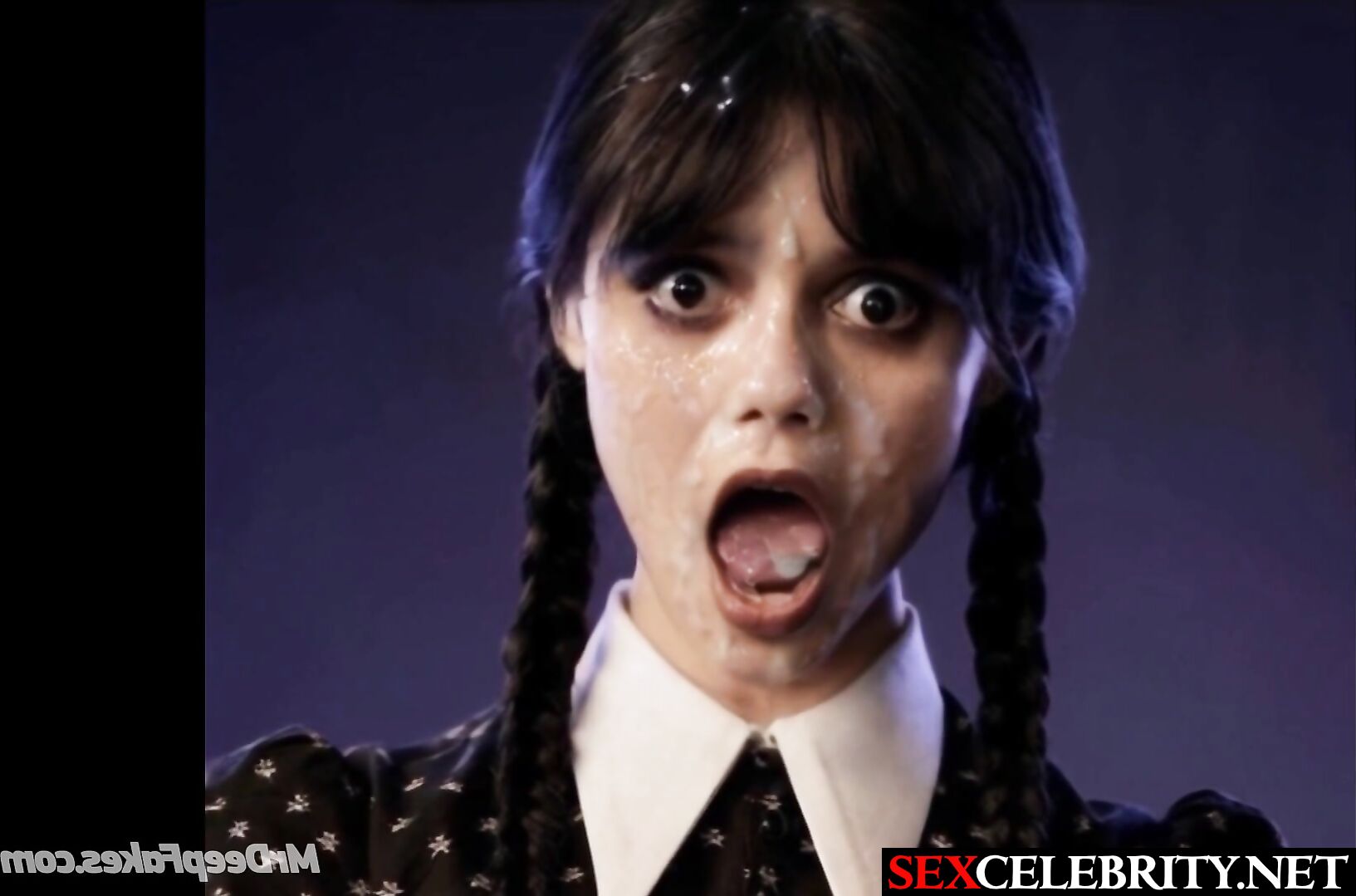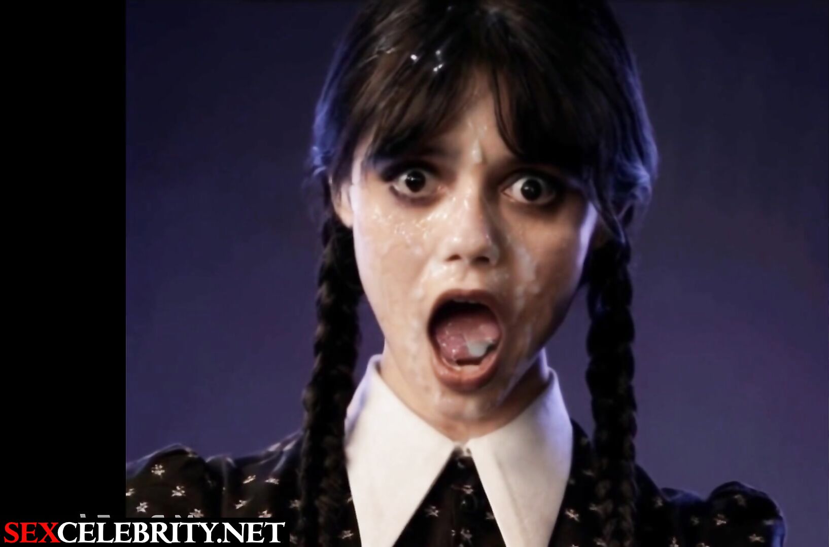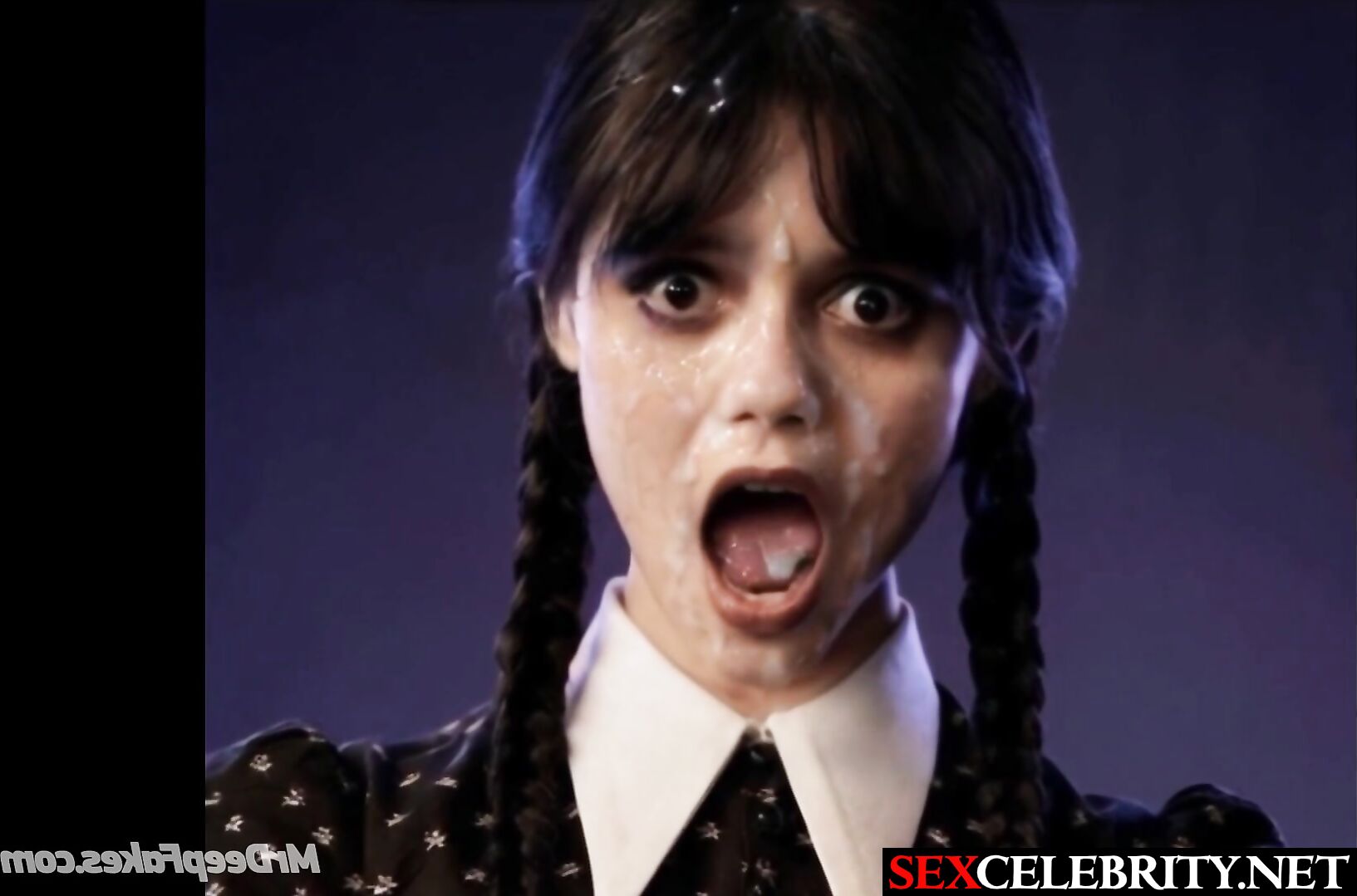 Her moaning face was cumed to the fullest - Jenna Ortega real fake
