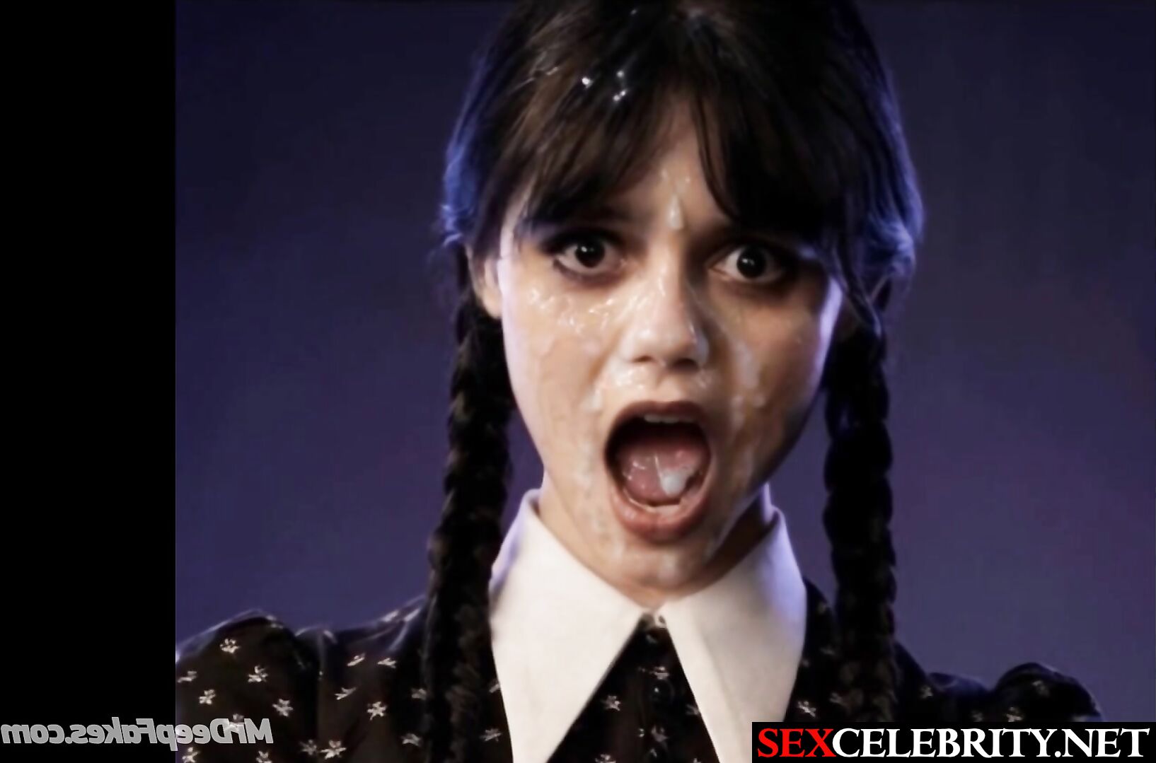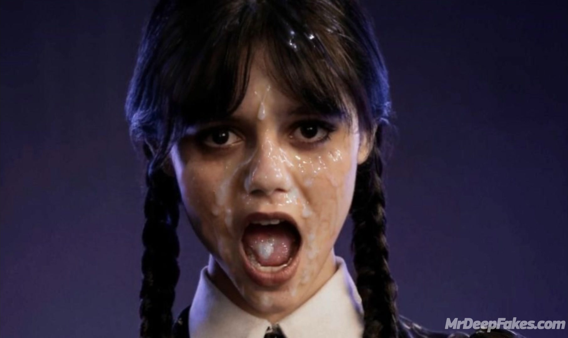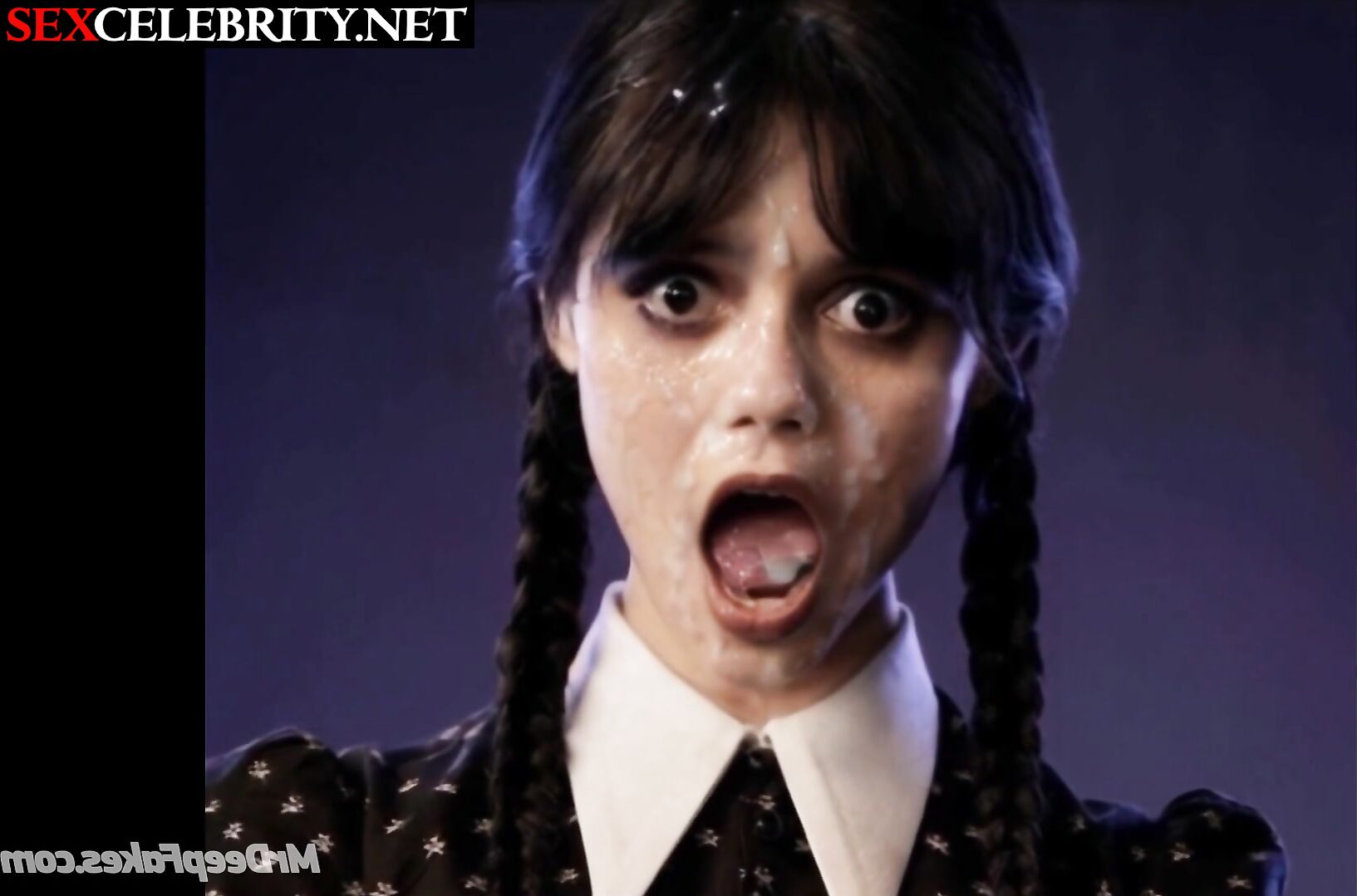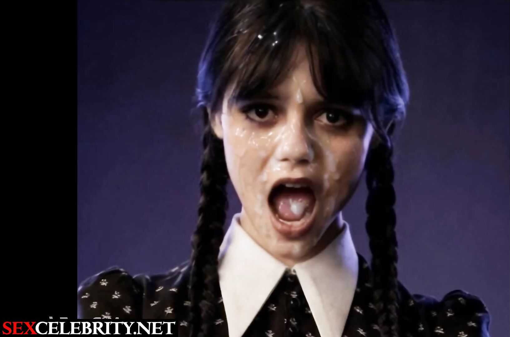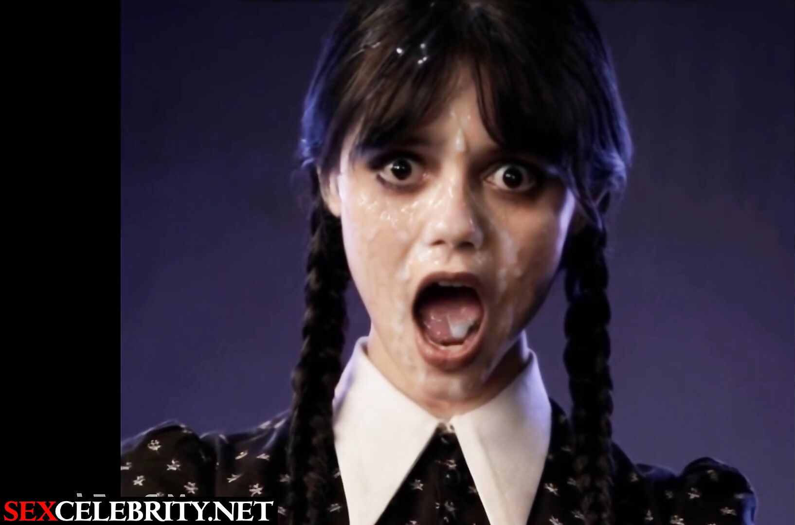 Her moaning face was cumed to the fullest - Jenna Ortega real fake