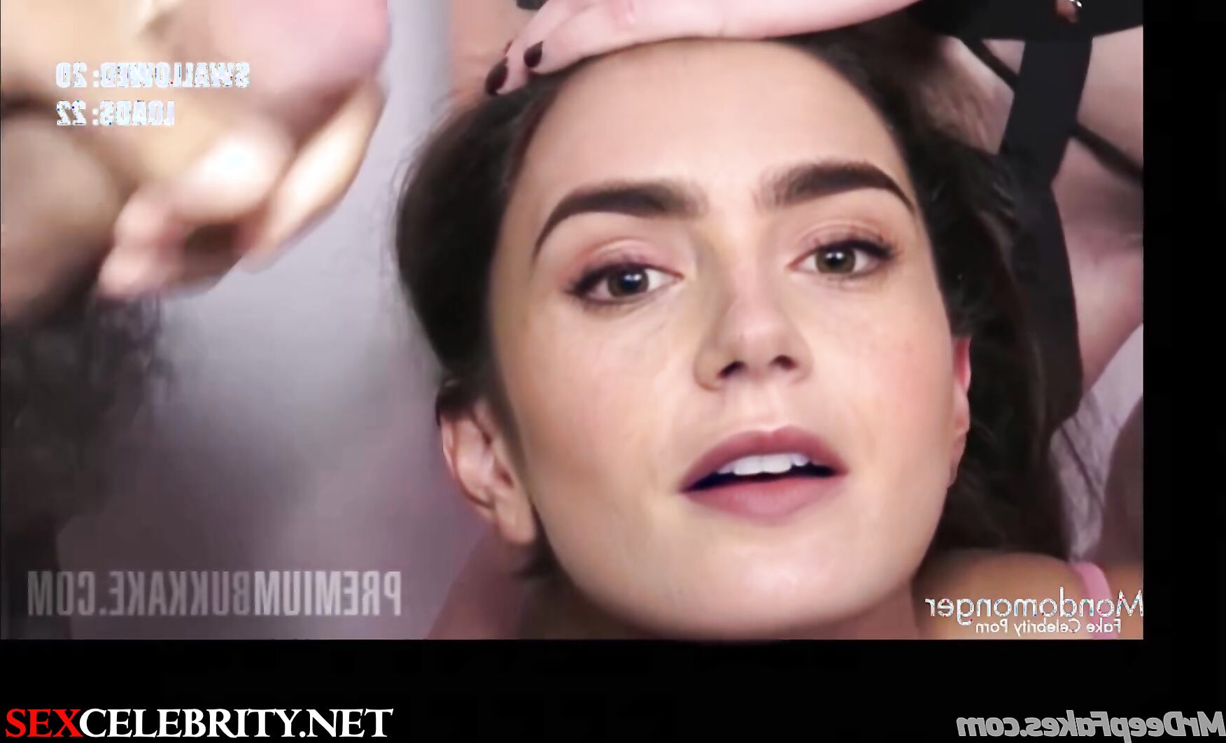 Lily Collins face swaps in a gangbang, takes cum on her face & mouth multiple times